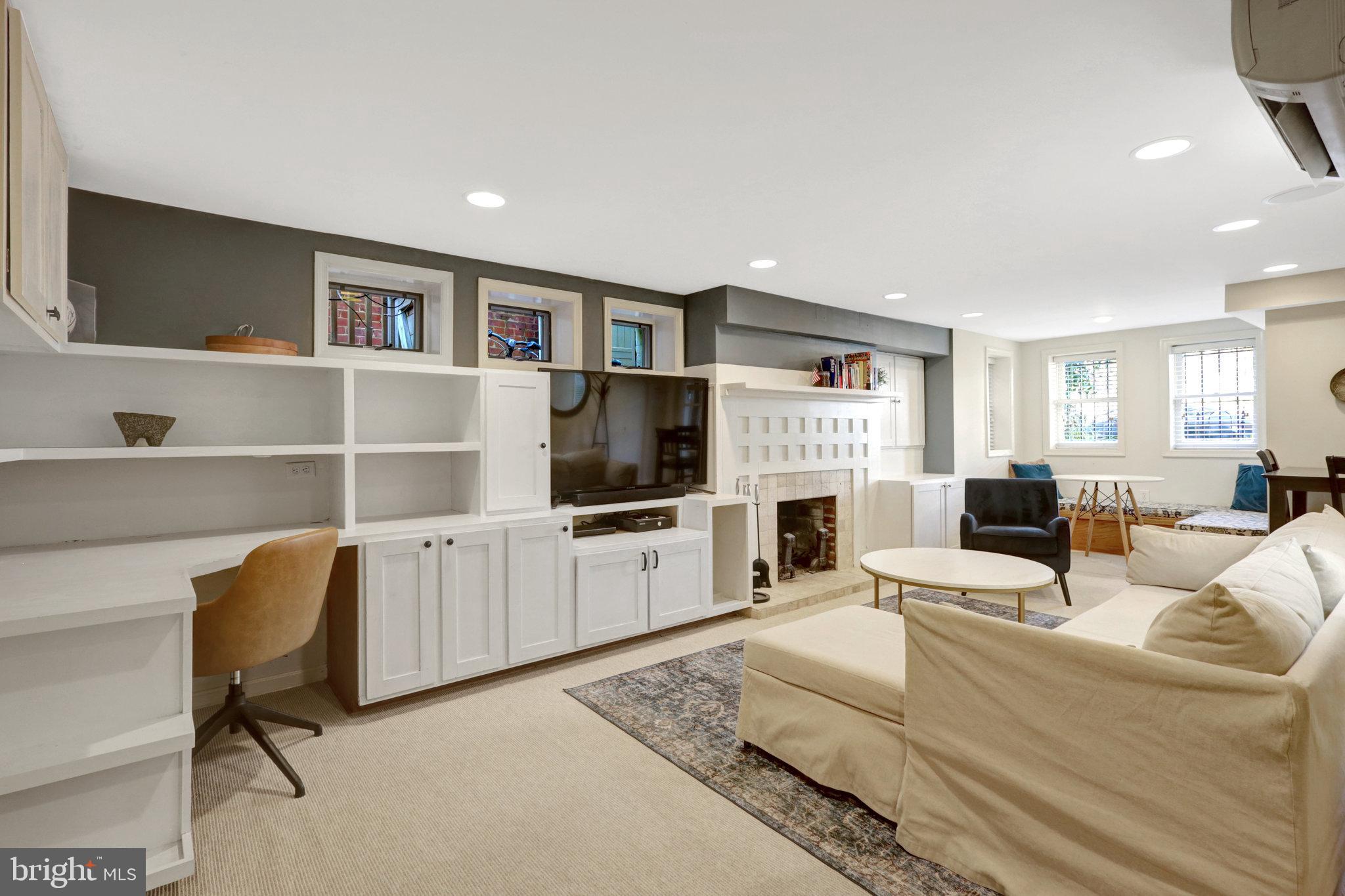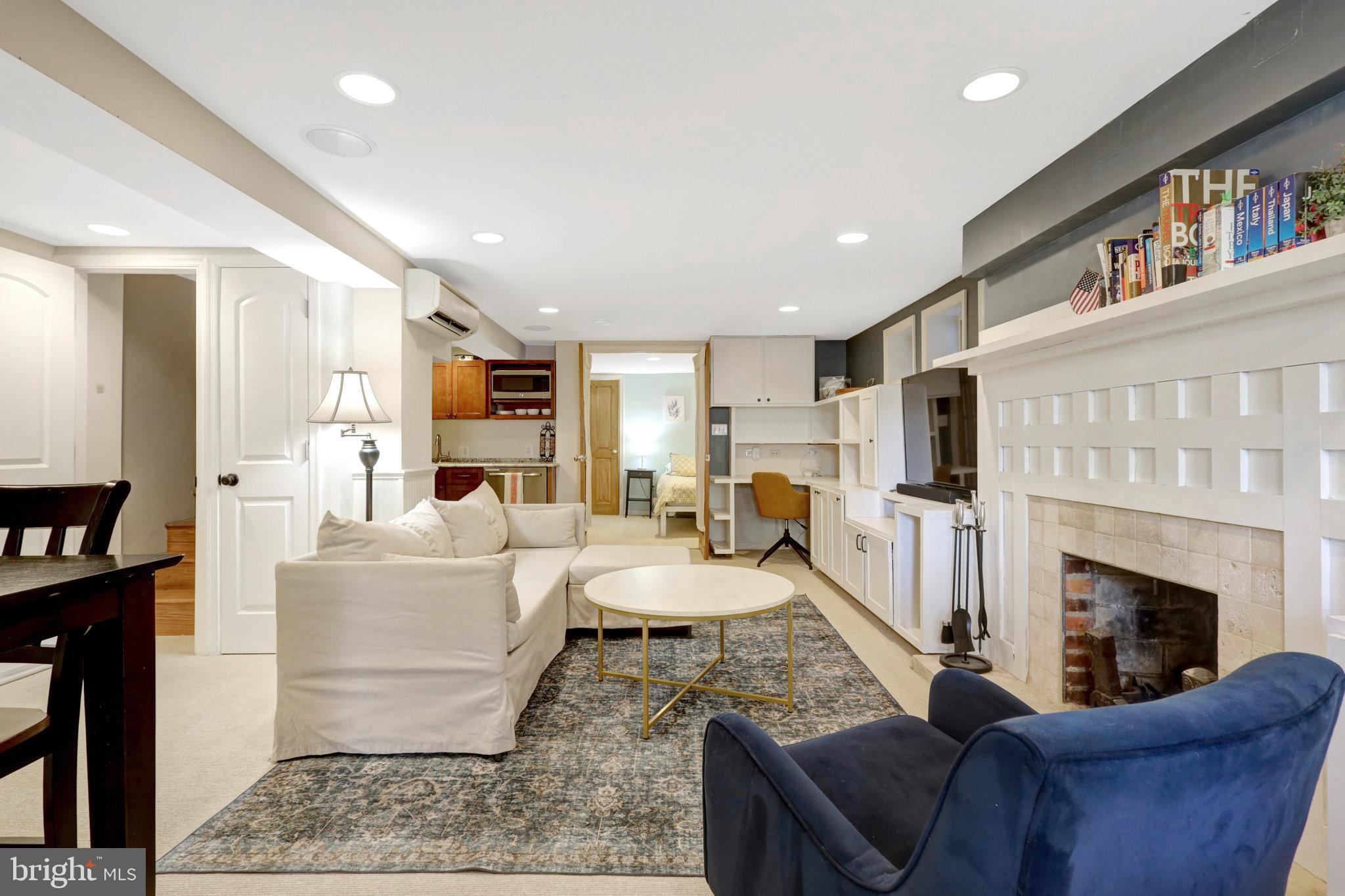The flexible Lower Level, accessible through a wide glass door, offers a versatile space, perfect for a den, in-law suite or as an income-generating option. This cozy area features a Kitchenette, a second Fireplace, and a 4th bedroom, alongside a full Bath and a Utility Room equipped with a Washer and Dryer. Recent updates include a Navean Boiler (2024) for the upper levels radiant heat, AC condenser (2020) for the upper levels, and separate heating and cooling units for the lower level, ensuring comfort throughout the year.