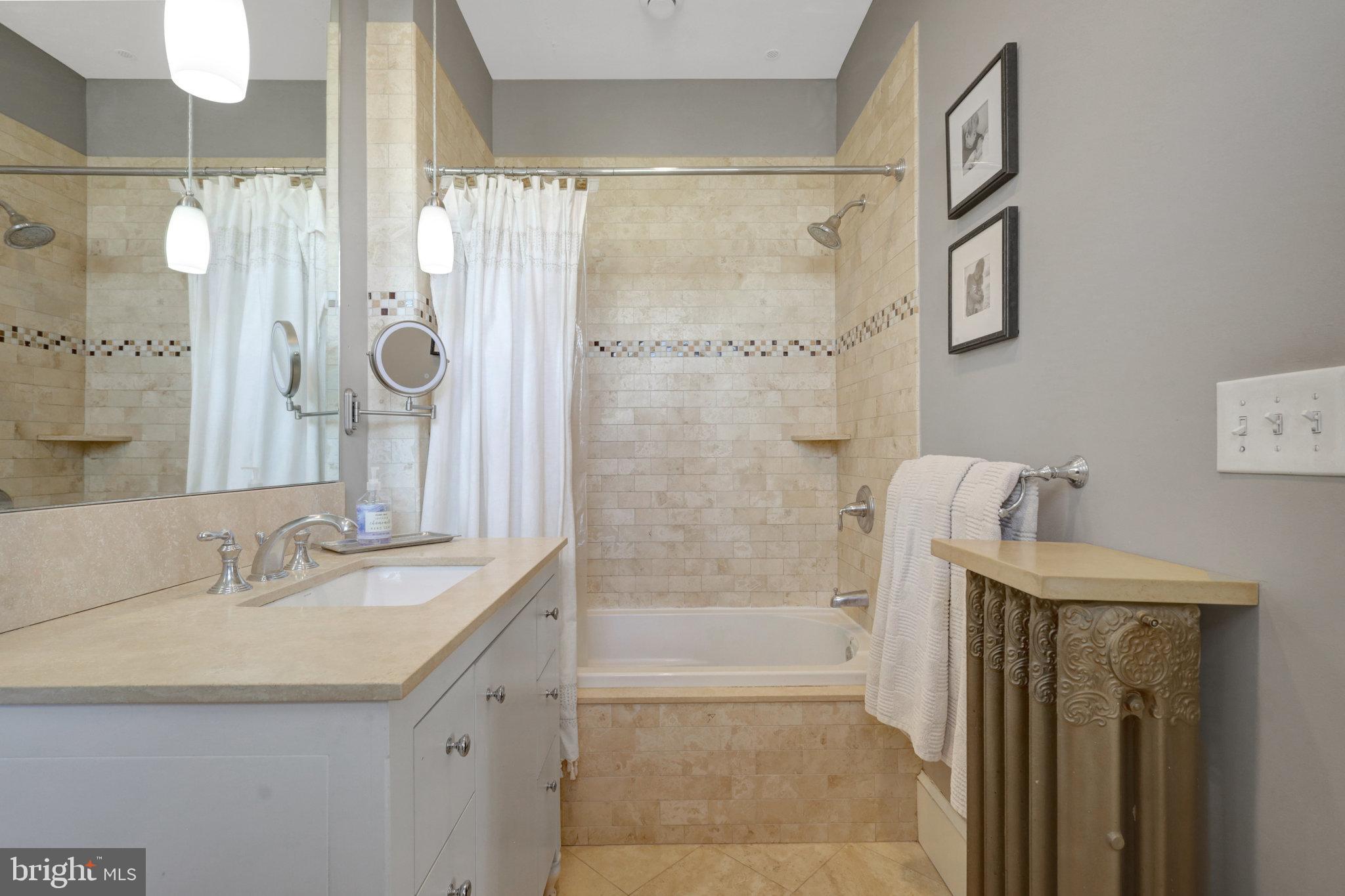 Ascending to the upper level, the Primary Suite is a sanctuary of comfort, designed to accommodate a king-size bed and accompanied by practical built-ins, a sunny bay window, and a luxurious primary bath. Two additional bedrooms, each with thoughtful details like exposed brick and ample storage, share a 2nd full Bathroom adorned with marble and chrome fixtures.