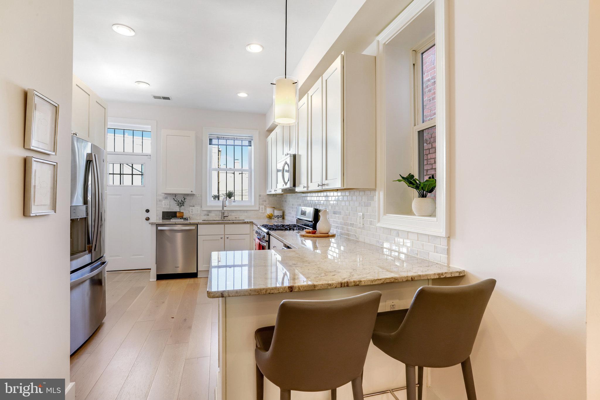 Open Sun 10/5 2-4pm. Interested in income-producing possibilities? Partial to potential parking? Focused on flexibility? New price (and recent rate dip) makes this lovely 4BR/3.5BA a great value today, and the ability to EASILY accommodate guests/au pairs, and the potential for AirBnB, puts flexibility to the forefront in the connecting lower level. And did we mention the previous owners used the rear patio for parking in the past?? Relax on the front porch and chat with neighbors. Step inside to a sunny open floorplan w/sleek floors, and exposed brick accent wall. Enjoy all modern conveniences including lovely stainless and granite kitchen w/breakfast bar on the main level, and the coveted primary ensuite bedroom w/frameless glass shower and double sink vanity upstairs. Profit from flexibility in one of the smartest lower level floorplans we've seen: front family room for main house usage, plus a lockable second living area w/a large kitchenette, the 4th bedroom and the 3rd full bathroom at rear. Hello holiday guests, au pairs, or possible AirBnB-ers! Step outside to multi-level living: a deck off the kitchen for morning coffee, plus lower level deck for al fresco dining, and the alley gate makes for easy bike/stroller access. Note that previous owners used the large patio as a parking pad (potential buyer should verify for themselves if parking is possible as property is not sold w/parking). Enjoy living close to Lovejoy Park playground, Lincoln Park, H Street bars and restos, Capital BikeShares, and all the Hill has to offer. As always, square footage is approximate and should not be used for property valuation.
