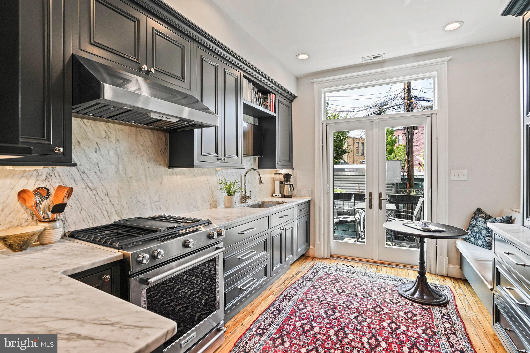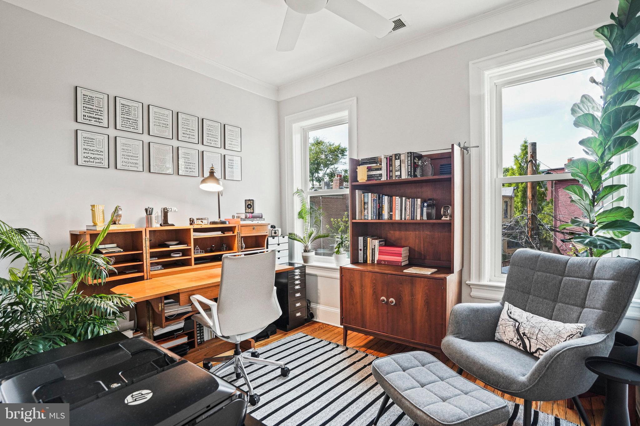 OPEN HOUSE CANCELED, OFFER ACCEPTED Welcome to 312 South Carolina Ave SE, a beautifully renovated 3-bedroom and 3-bathroom townhouse with PARKING on a quiet block nestled in between three beloved Capitol Hill parks. A deep front yard with gardens and space for outdoor seating welcomes you to this historic home. Through a bright vestibule the home opens to a sizable Living Room lined with built-in storage and long bay windows. The historically considerate renovation has revamped precious period details, while also implementing new features that complement the original charm. Every light fixture is a precious touch, original tile has been preserved, a Dining Room hutch and TV enclosure were crafted with use of historic kitchen cabinetry and the handsome center staircase and wood flooring shine with the careful work of restoration. The large Dining Room (with wallpaper hung by the same craftsman who worked on the walls of the White House!) provides room for a 6 or 8-seater table and various entertaining set-ups. A sunny Kitchen hosts plentiful cabinet and counter space, a built-in breakfast nook, and French doors leading to the outside porch and parking. Upstairs, the delightful Primary Suite offers a huge walk-through closet with custom shelving and a clever ironing board closet with additional storage. The roomy Primary Bath features a custom art-deco vanity, glass tiles, and a shower with a bench. A sunny Second Bedroom, hall Bath with clawfoot tub, and stacked laundry with additional storage rounds out the top floor. On the lower level a big front room with a sunny window provides recreation or WFH options. The basement hallway is lined with big storage closets to pack away a substantial amount of belongings. Smart upgrades like a tankless water heater, sump pump, and waterproofing ensure the home's integrity for years to come. Towards the rear of the home you'll find a third bedroom with a second hall Bath that gives refuge for visitors or remote workers. The gorgeous and green Garfield Park, Providence Park (affectionately known as X Park), and Marion Park are all within half a block providing playgrounds, dog parks, bocce, and fitness options. We invite you to visit today to discover a home that perfects the blend of the very best of classic Capitol Hill and modern creature comforts.