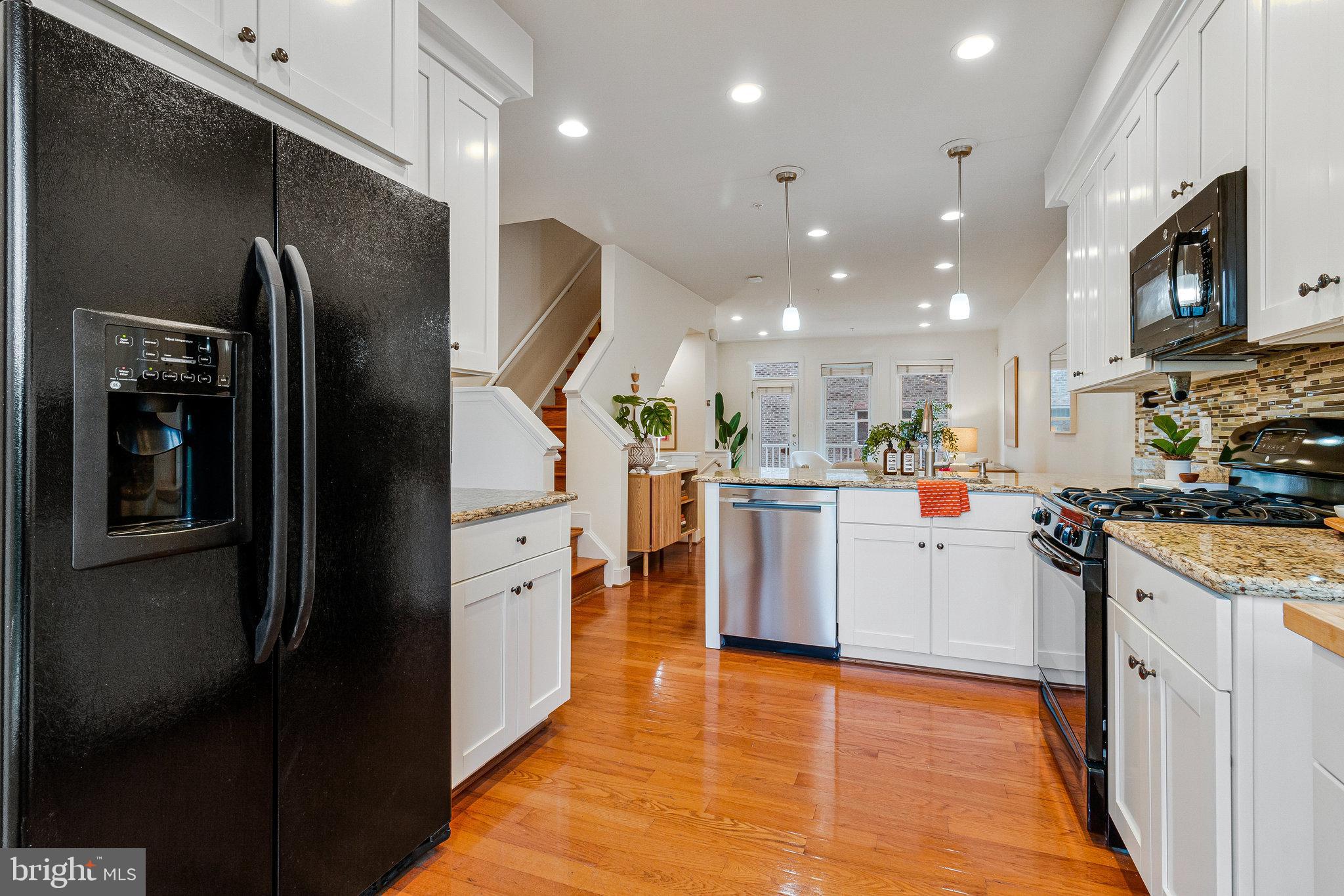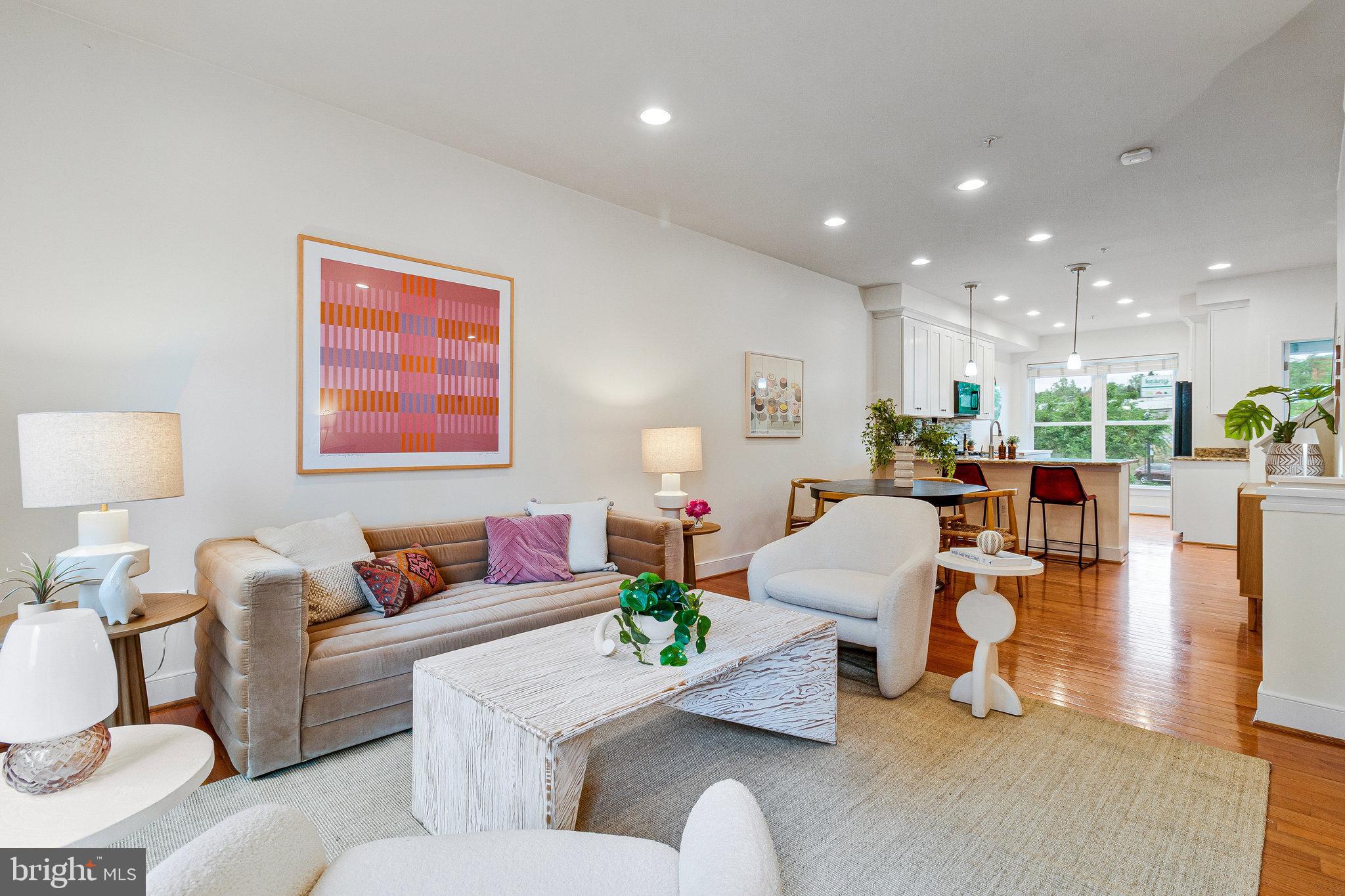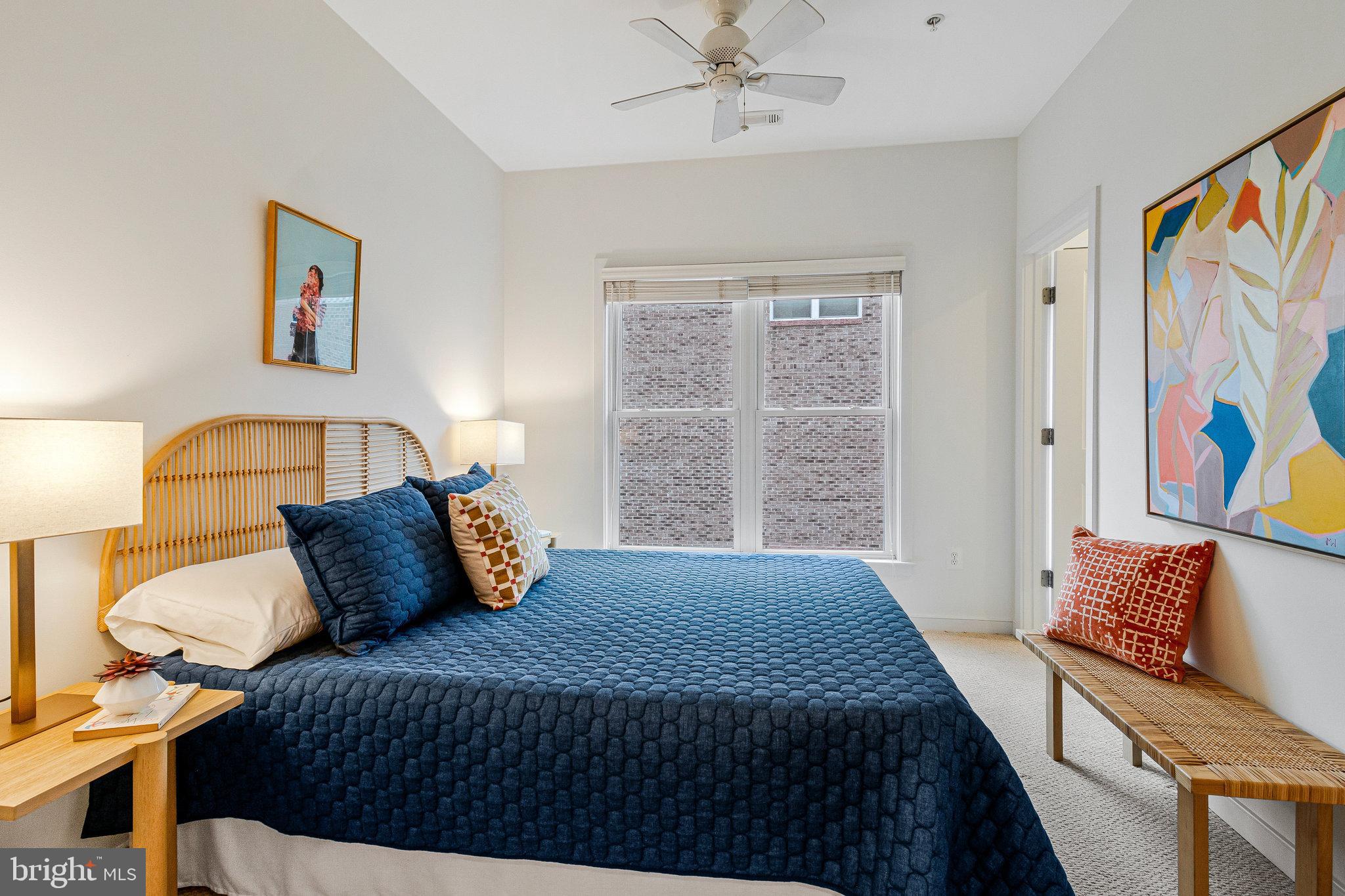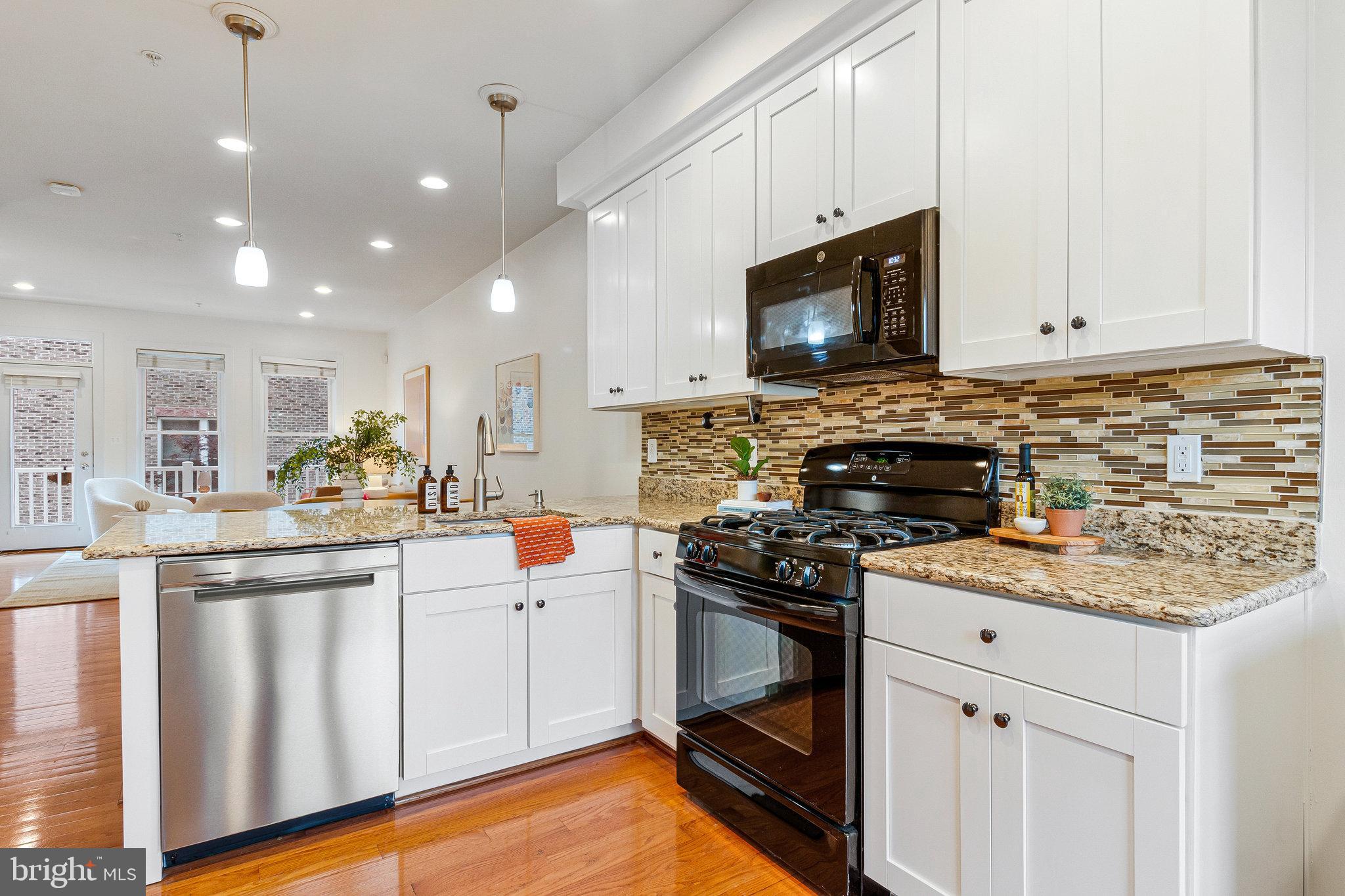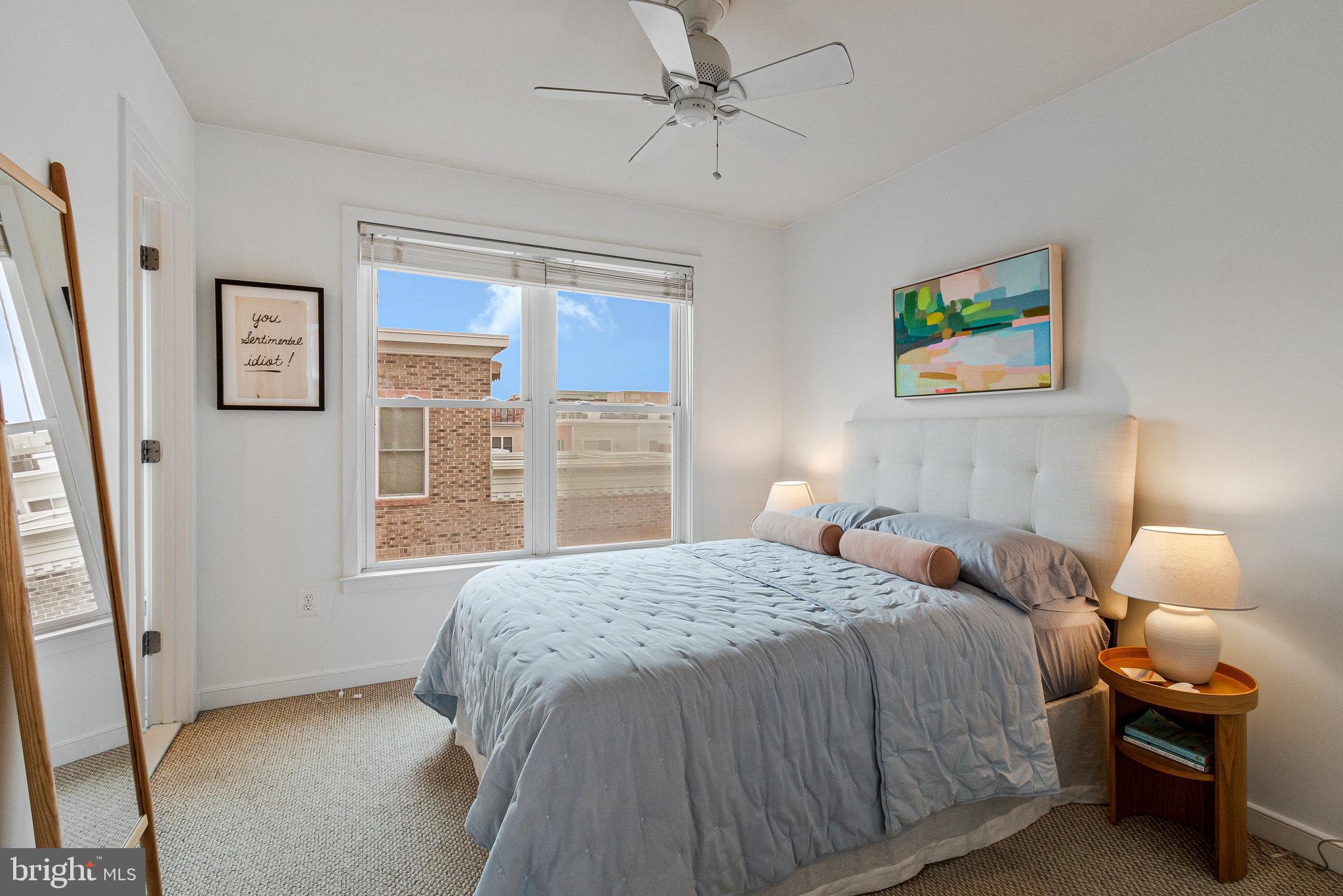 Capitol Quarter 4BR w/2 Capitol views, plus perfect positioning for privacy and light!! Popular Addison model features 4BR/3.5BA (3BRs are ensuite w/private baths), a large bright entertainment room, a roof deck w/a Capitol view, amazing storage, practically sound-proof windows throughout, dual zone HVAC, and garage parking, all in rare PRIMO location looking north onto DEEP and WIDE tree-filled park and bike paths. Flexible floorplan accommodates a variety of uses, as the entry level BR w/huge closet and large windows is an equally ideal WFH office, mini-gym, art or yoga room, and the hall coat closet is convenient from front door or garage. One level up a spacious and bright open plan living/dining/kitchen area w/wood floor is great for entertaining on large or small scale, w/a neat nook for a credenza or bar cart across from your dining table, plenty of space for large couches in the living area, and the convenience of a discreetly-located powder room. At rear, the wall of windows opens onto a south-facing balcony to enjoy morning coffee or chat w/neighbors and the secret screen door is a nice bonus. Oversize windows at the front provide great light and a view of the park from the kitchen. Cooks who entertain will love this large and well-designed space, w/breakfast bar, gas cooking, microwave, new dishwasher (2024), tall cabinets, copious granite countertops, plus a bonus butcher block credenza (wine fridge as is), and a separate pantry closet.