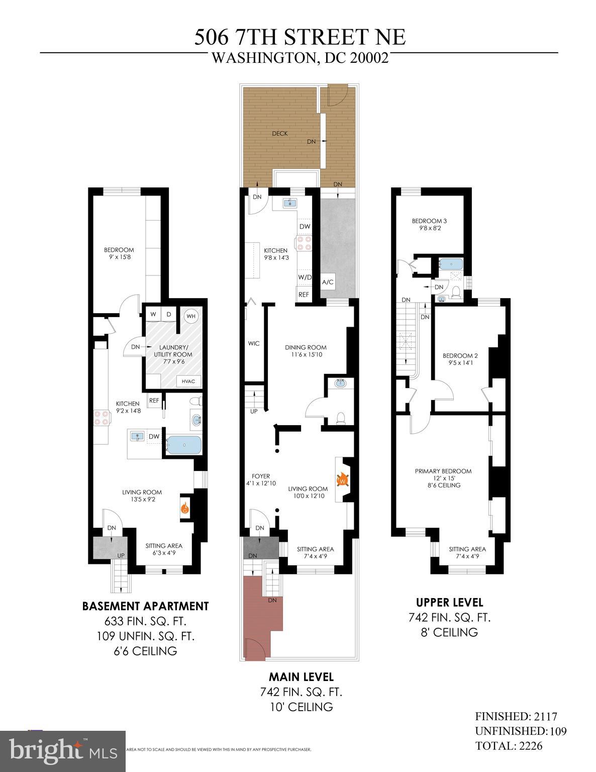Questing for a quiet street? Begging for a bayfront and open to options in a flexible floorplan? This 4BR/2.5BA house on tree-lined and serene 7th Street checks these boxes, with 3BR/1.5BA on upper 2 floors, and 1BR/1BA in flexi basement. Beautiful cast iron exterior stairs welcome you into the main house and an exposed brick entry foyer with columns and a marble floor. Large living room with built-in bookcases and a wood-burning fireplace opens onto a separate dining room, both featuring crown molding, chair rail, ceiling medallions and wood floors. A half bath is convenient for guests and the DEEP under stairs closet is great storage OR an easy way to reconnect the basement in the future. Lovely large kitchen offers oodles of cabinets, stainless steel appliances, quartz countertops, glass subway tile backsplash, a big breakfast bar, and a Euro-style combo washer/dryer. Step out to a large wood deck for al fresco entertaining, with pedestrian access to rear alley for bikes and strollers. Upstairs are a quite large front bedroom with an entire wall of closets and a Peloton-perfect bay window. Two additional bedrooms, a hall bath with tub and vanity, plus large hall closet and skylight complete the picture. Main house, now vacant, had been rented for $3500/mo.