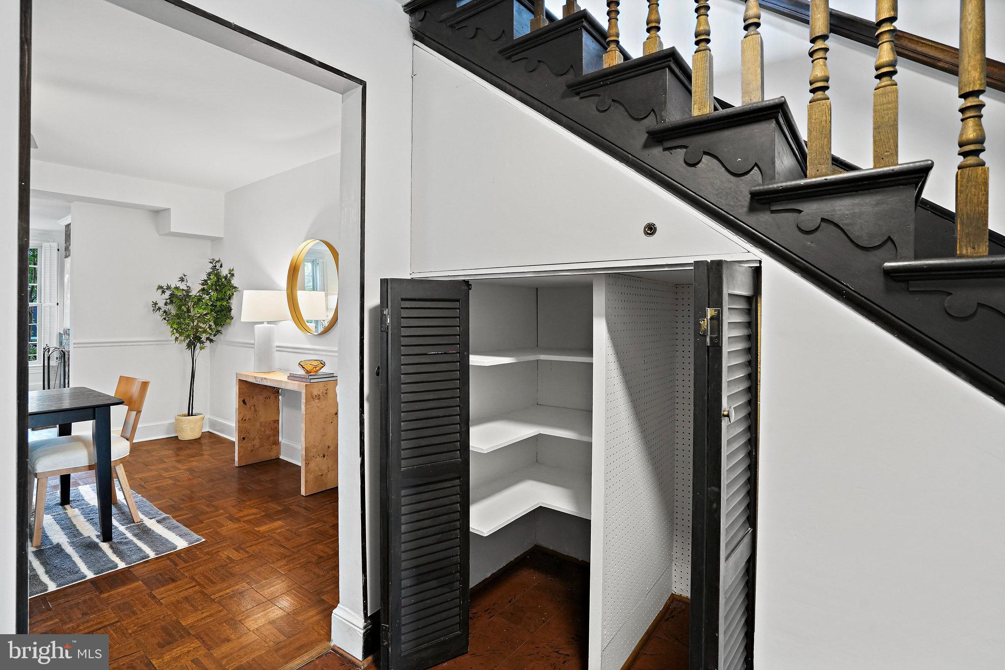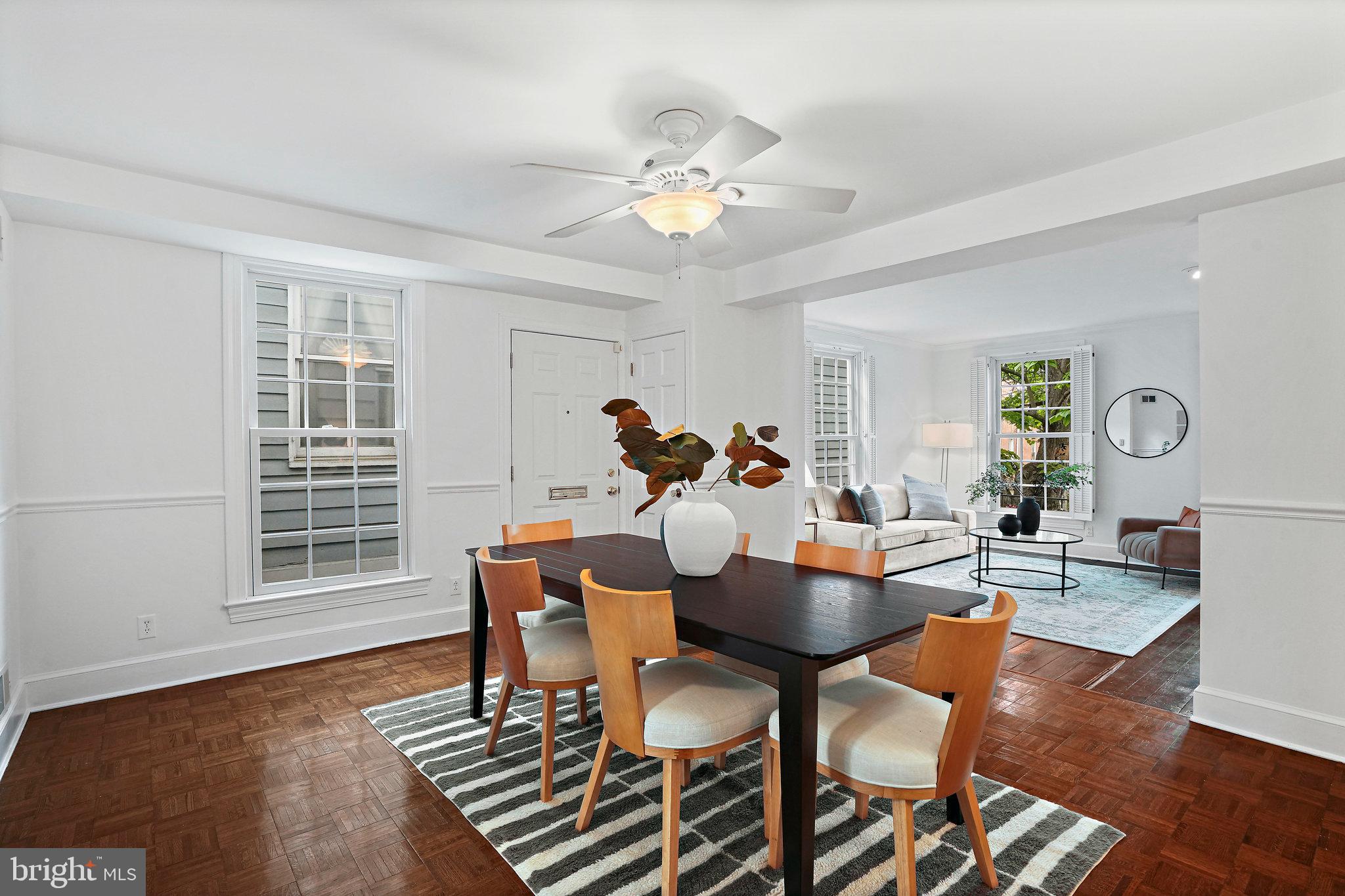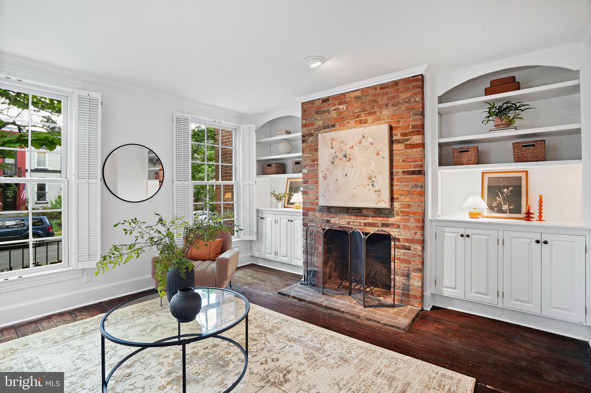 3BR/2.5BA 2 level semi-detached clapboard home boasts 3 fireplaces, 2 sets of built-in bookcases for the bibliophile, and PARKING in an oversized GARAGE, all in a perfect perch on a quiet street 1 block to Barracks Row restaurants, 1 block to The Hill Center cultural mecca, and steps to Eastern Market. Approx 1750sf house plus 330sf garage (per floorplans, not to be used for valuation), 1st time on the market in 30 years, this estate sale property was lovingly maintained, and has been completely repainted. Bright living room has 3 windows, wood floor, and an exposed brick wood-burning fireplace flanked by built-in bookshelves that light up. Spacious center dining room easily accommodates 4-14, has parquet wood floors and rare coat closet near front door. Convenient powder room is discreetly located in the hall, across from SPACIOUS and clever under-stair storage. Entertain more informally in the large kitchen, breakfasting at a table by the oversize window and a welcoming exposed brick fireplace (gas), w/comfy cork floor and an open peninsula design great for gathering, plus a cool KitchenAid fridge. Washer/dryer closet is at rear, while side door to rear patio makes al fresco entertaining easy. Upstairs the big primary ensuite bedroom at rear easily accommodates its king bed, (or a queen bed plus a desk/sitting area), and features a large window, exposed wood beams, wood floor, large walk-in closet, and an ensuite bath w/glass stall shower. And that big walk-in closet w/a window could make a sweet WFH office space, too! Bright front bedroom has 3 windows, another exposed brick wood-burning fireplace flanked by built-in bookcases, wood floors and an almost 7' long closet. Middle bedroom is carpeted for toasty toes, w/space for a desk, a large bright side window, and the 2nd full bath upstairs has a tub, built-in storage, and window. Step outside to a flagstone-paved patio, bordered by planting beds w/hostas and hydrangeas, and partially sheltered by a mature tree. PARK in coveted oversize GARAGE for 1 car plus bikes plus plenty of storage space and Elfa shelving systems, w/keypad access from alley. Enjoy an excellent location, on a quiet street a block west to Barracks Row, a block north to neighborhood cultural center The Hill Center at the Old Naval Hospital (and famed Little Pearl restaurant), and steps to Fragers, Eastern Market, Safeway, the multi-venue dining and drinking consortium The Roost, and several Capital BikeShares. AS IS Estate Sale. Carpe Diem!