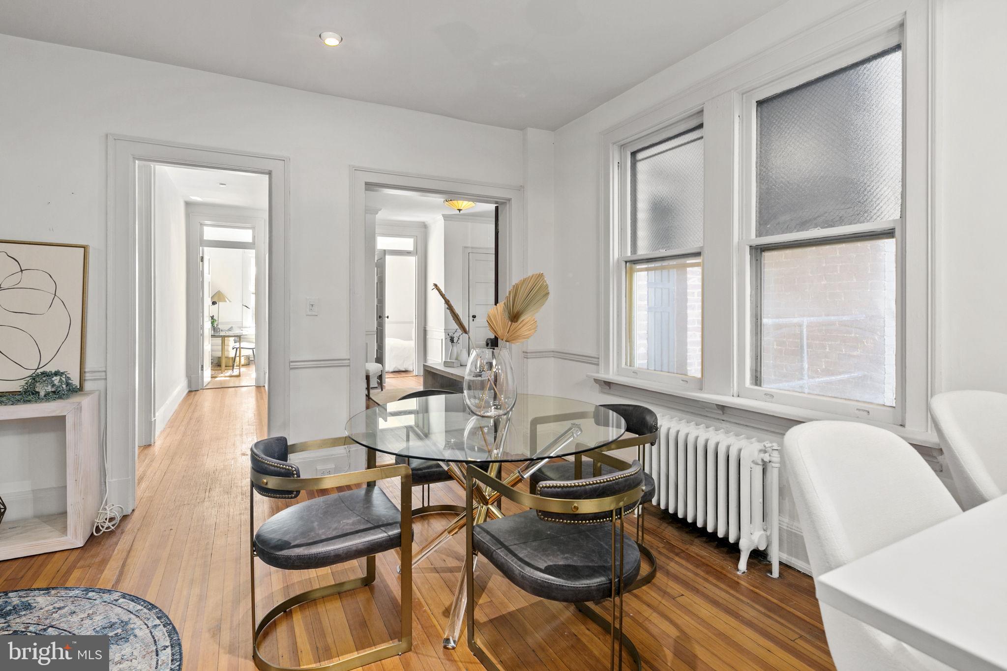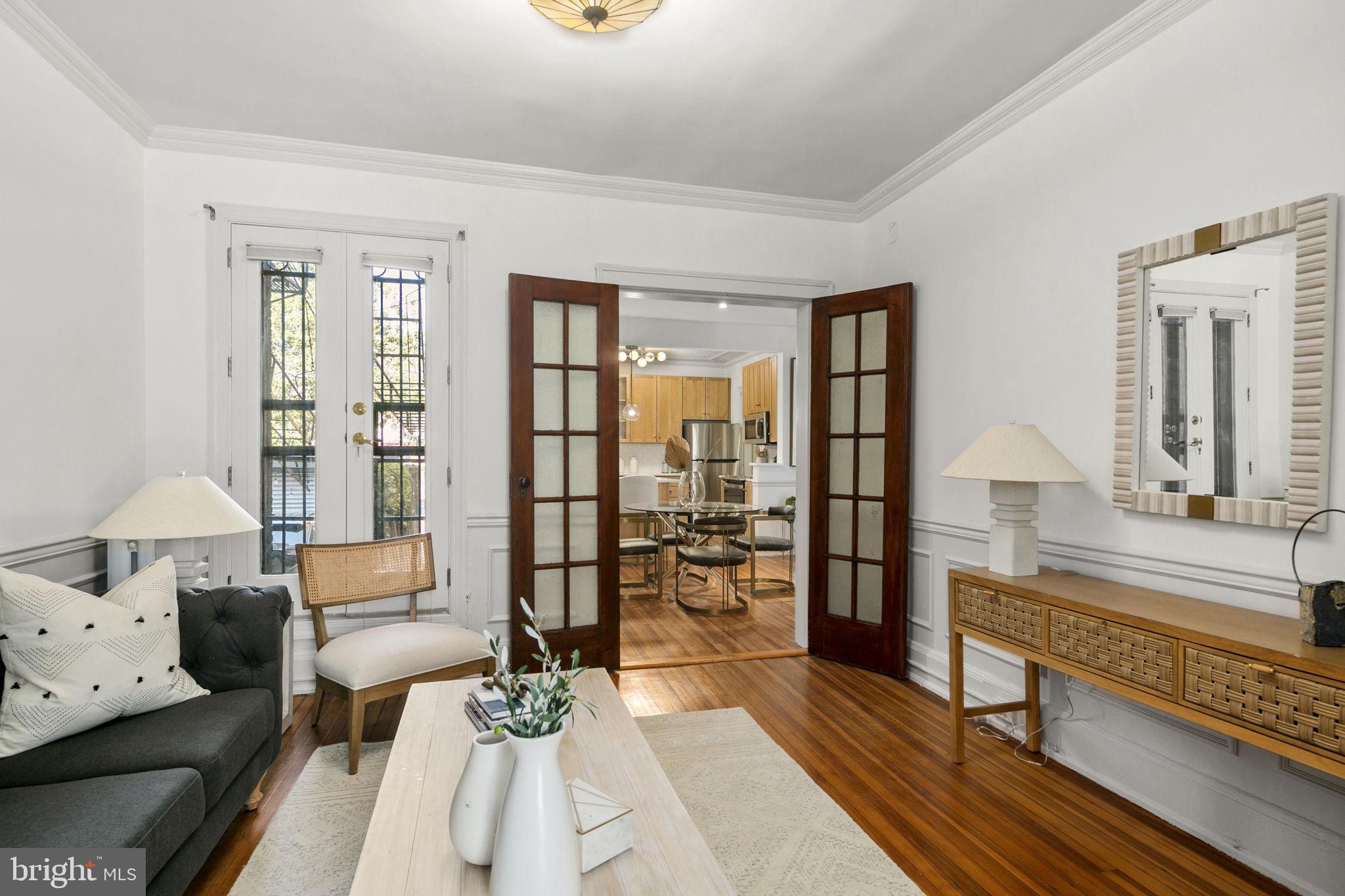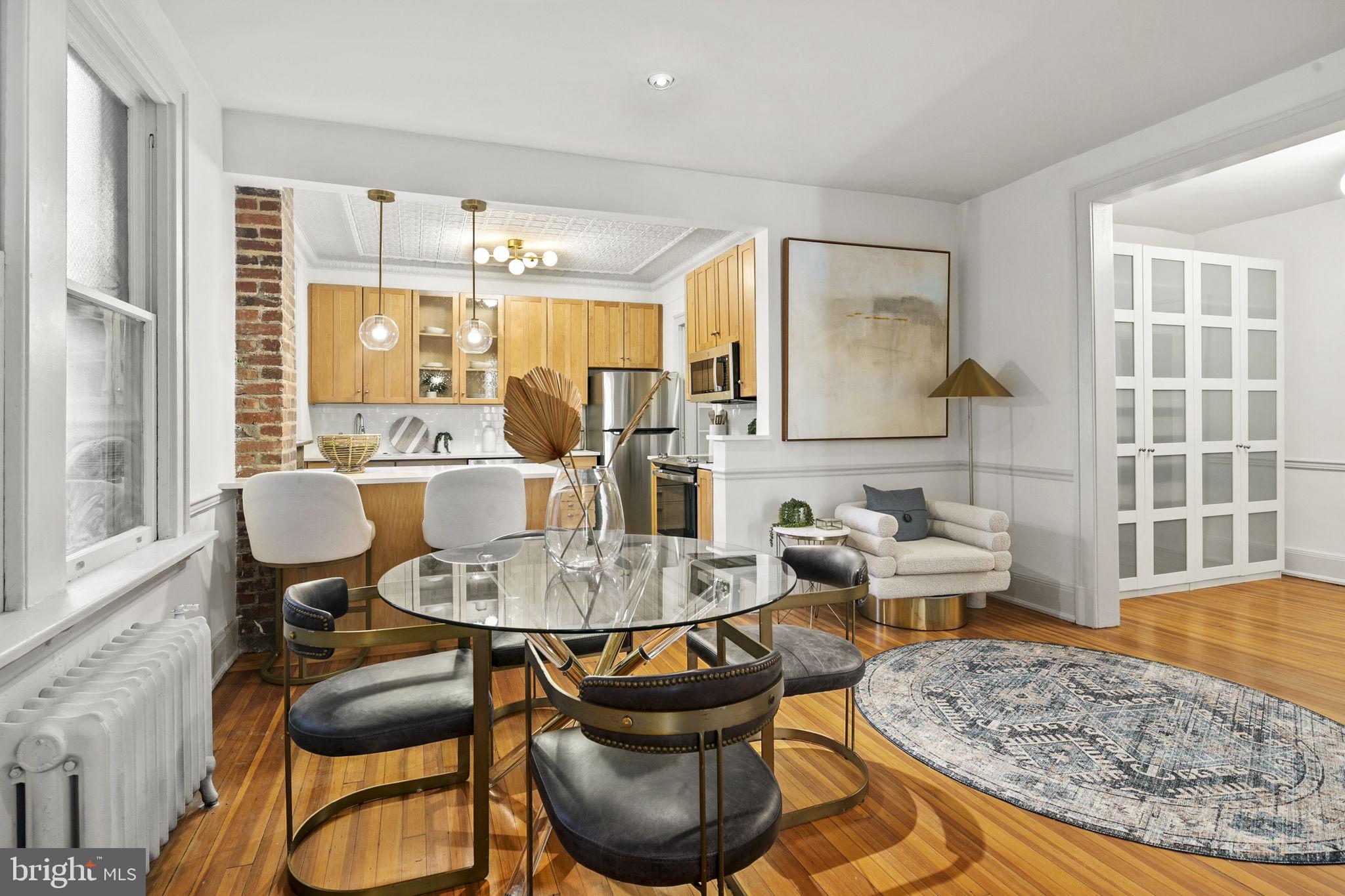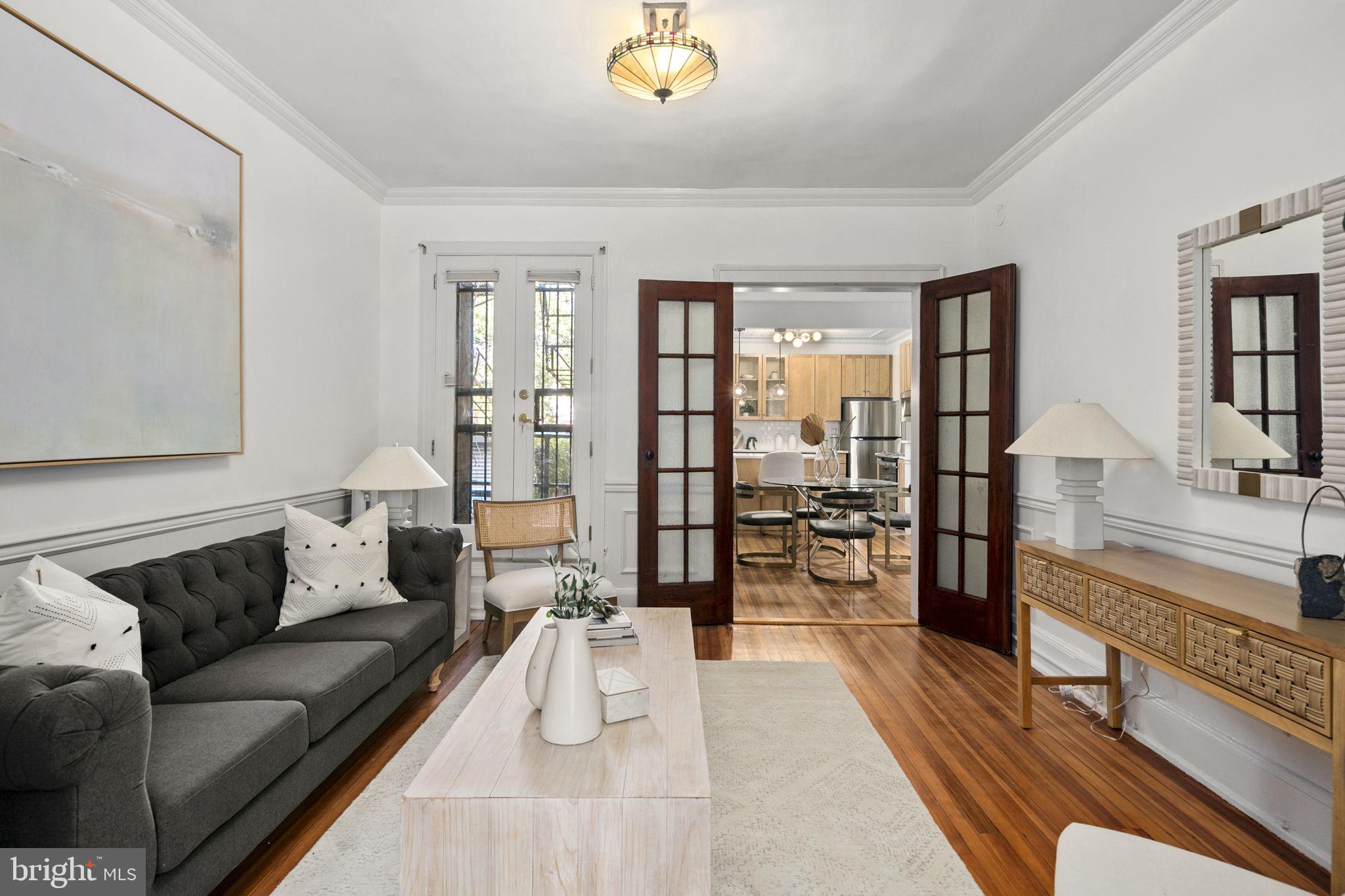 Welcome to this spacious one-bedroom coop apartment in the heart of Capitol Hill. This historic gem offers a delightful blend of classic elegance and modern updates. As you step inside, you'll be greeted by the high ceilings and original wood floors that exude character and warmth. There is a gracious entry foyer with a large set of storage cabinets that leads to your main living spaces, including the dining room, breakfast bar, kitchen, living room (that could be a den or guest room), and the spacious bedroom and vintage bathroom. The living room/den provides a sizable, yet cozy, space to relax and unwind. It's a flexible space that could easily be used as a home office or a guest room with a pull-out couch. The dining room is just off the breakfast bar and is perfect for hosting intimate dinner parties. The interior features of this home are truly exceptional. The kitchen boasts brand-new stainless-steel appliances, new quartz countertops, new backsplash, and a substantial, walk-in pantry with ample storage space for all your culinary needs. The home has beautiful original elements, such as original 5-pane doors, French doors, and wood molding throughout, adding a touch of timeless beauty. You'll love the new lighting fixtures that create a bright and inviting atmosphere. Custom closets provide organized storage solutions, ensuring that everything has its place. This unit has been freshly painted, with smooth new plastered ceilings and walls that create a clean and crisp aesthetic.