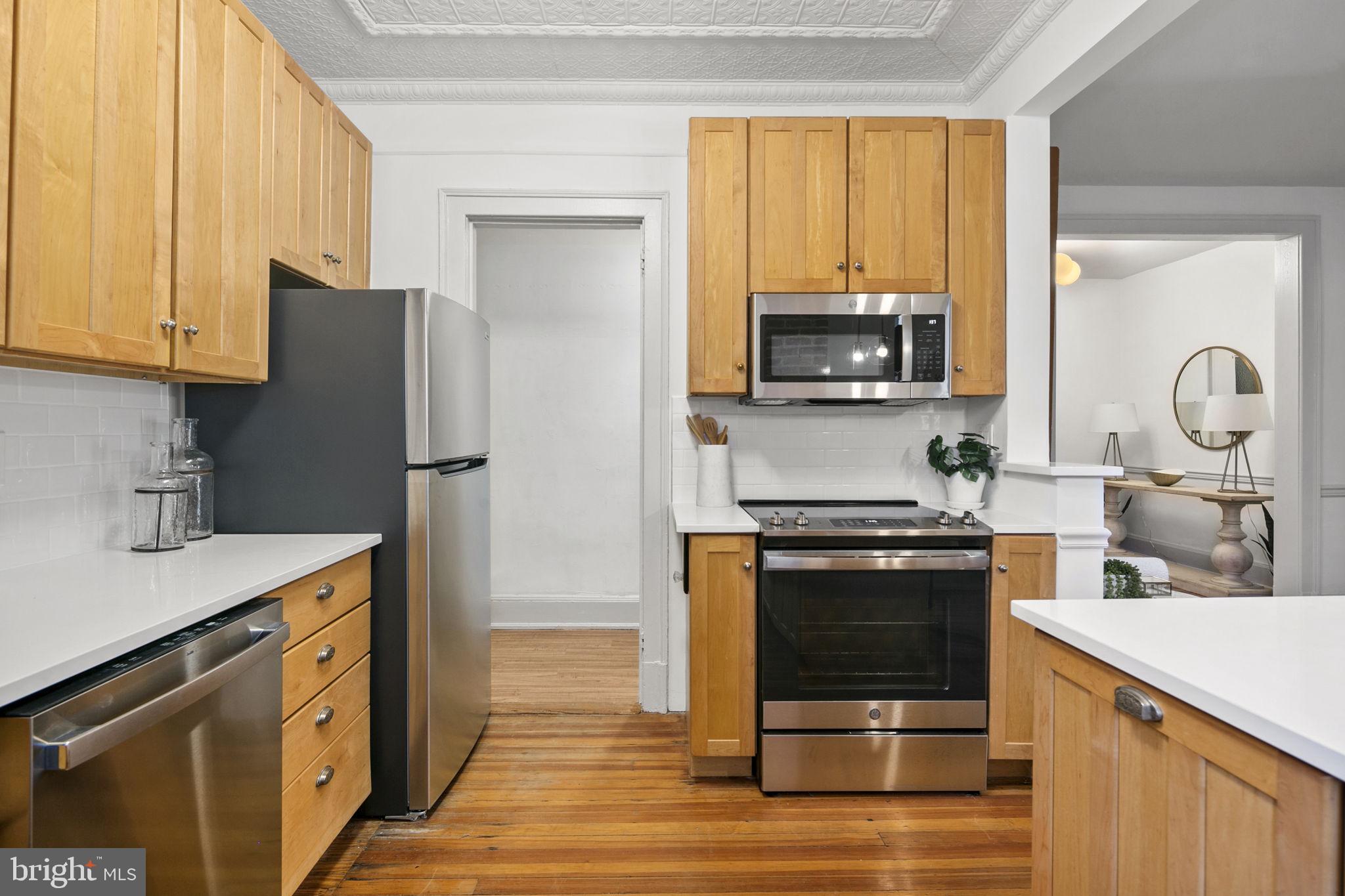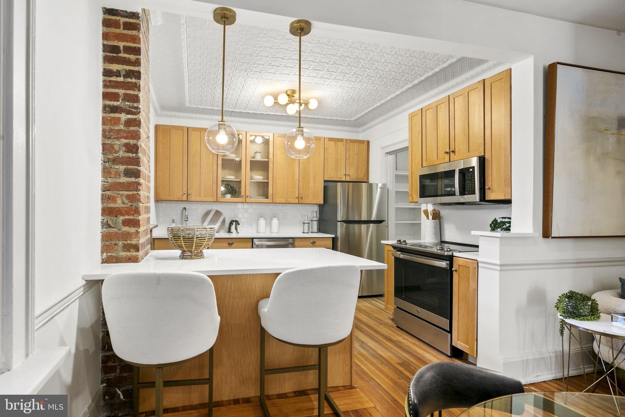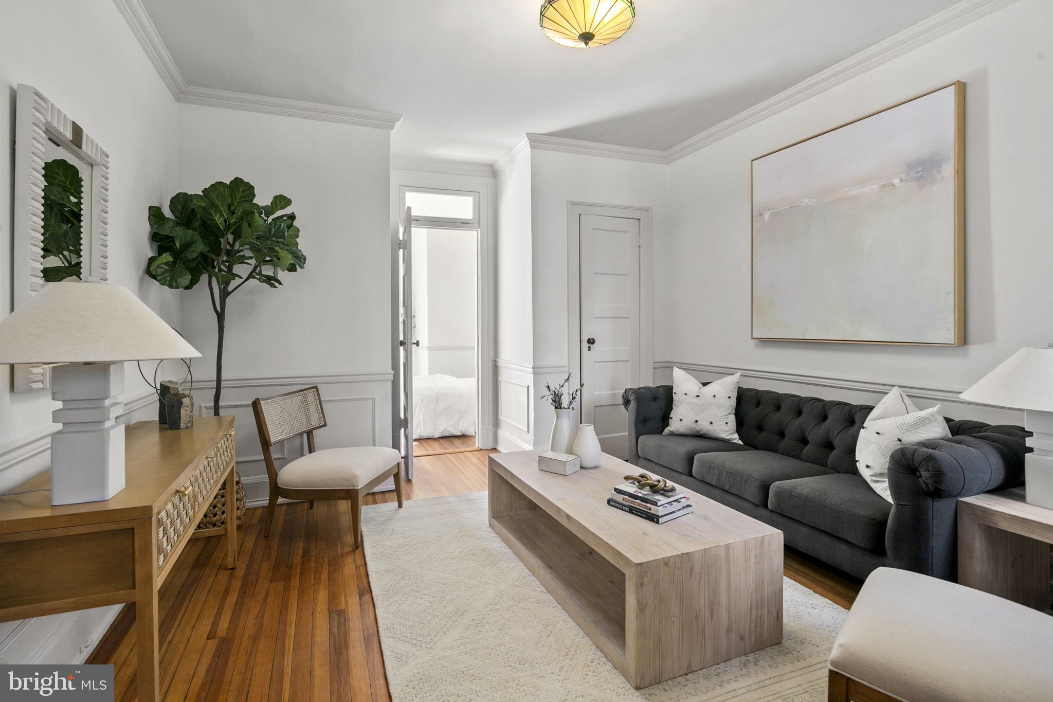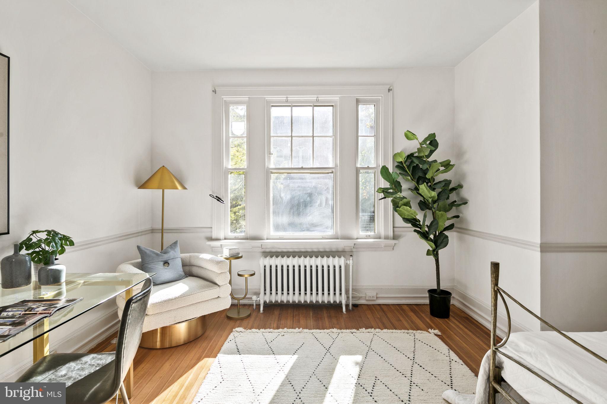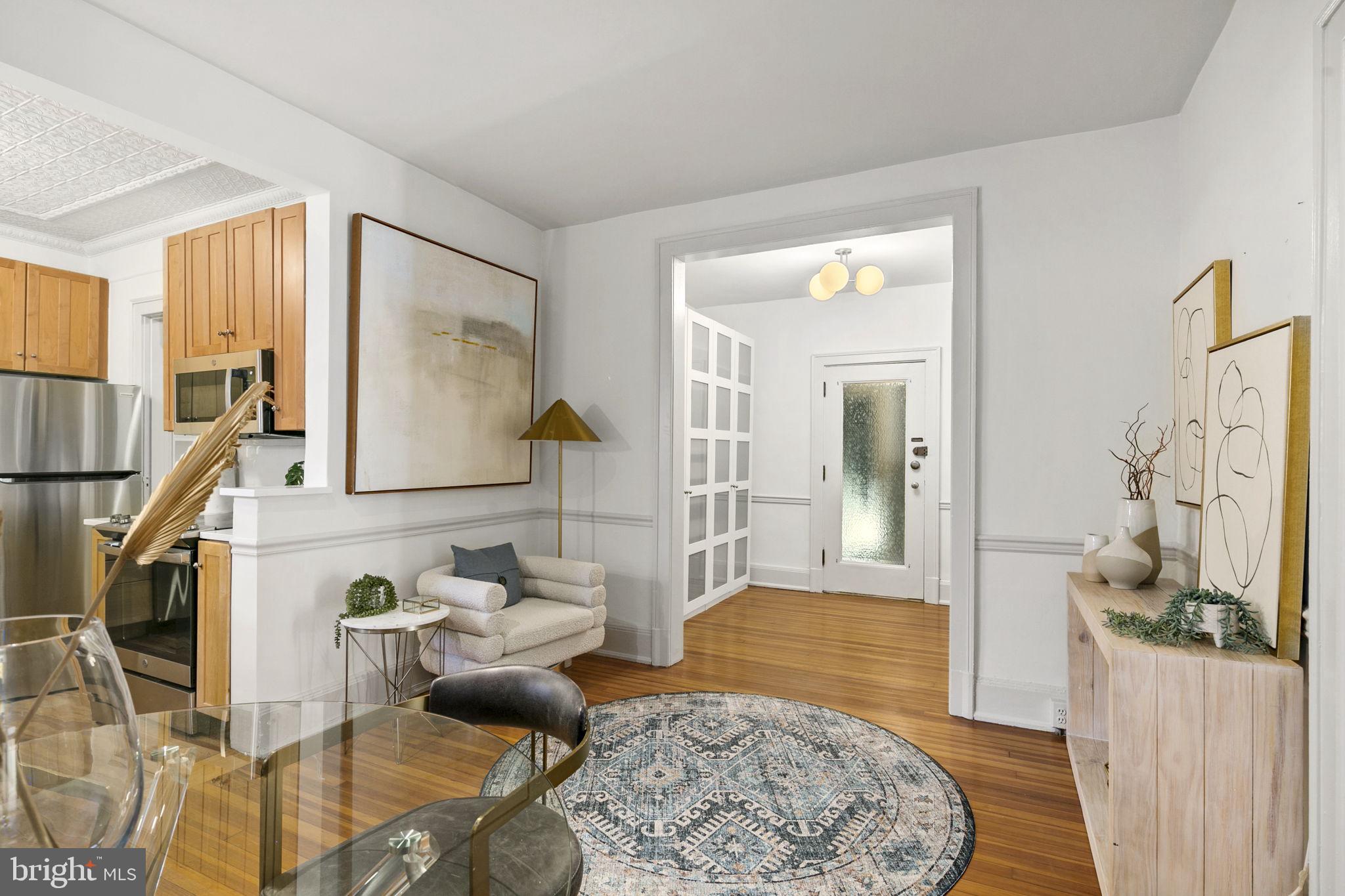Welcome to this spacious one-bedroom coop apartment in the heart of Capitol Hill. This historic gem offers a delightful blend of classic elegance and modern updates. As you step inside, you'll be greeted by the high ceilings and original wood floors that exude character and warmth. There is a gracious entry foyer with a large set of storage cabinets that leads to your main living spaces, including the dining room, breakfast bar, kitchen, living room (that could be a den or guest room), and the spacious bedroom and vintage bathroom. The living room/den provides a sizable, yet cozy, space to relax and unwind. It's a flexible space that could easily be used as a home office or a guest room with a pull-out couch. The dining room is just off the breakfast bar and is perfect for hosting intimate dinner parties. The interior features of this home are truly exceptional. The kitchen boasts brand-new stainless-steel appliances, new quartz countertops, new backsplash, and a substantial, walk-in pantry with ample storage space for all your culinary needs. The home has beautiful original elements, such as original 5-pane doors, French doors, and wood molding throughout, adding a touch of timeless beauty. You'll love the new lighting fixtures that create a bright and inviting atmosphere. Custom closets provide organized storage solutions, ensuring that everything has its place. This unit has been freshly painted, with smooth new plastered ceilings and walls that create a clean and crisp aesthetic.