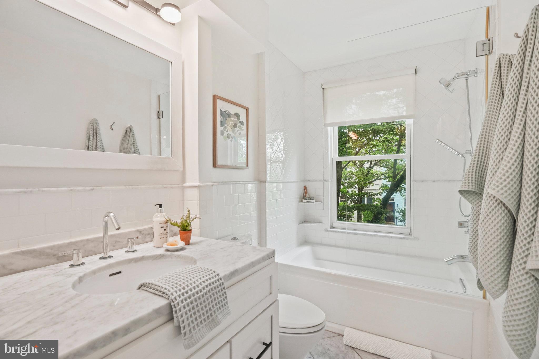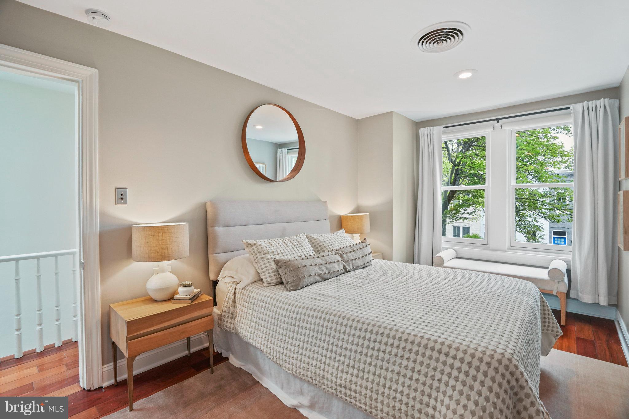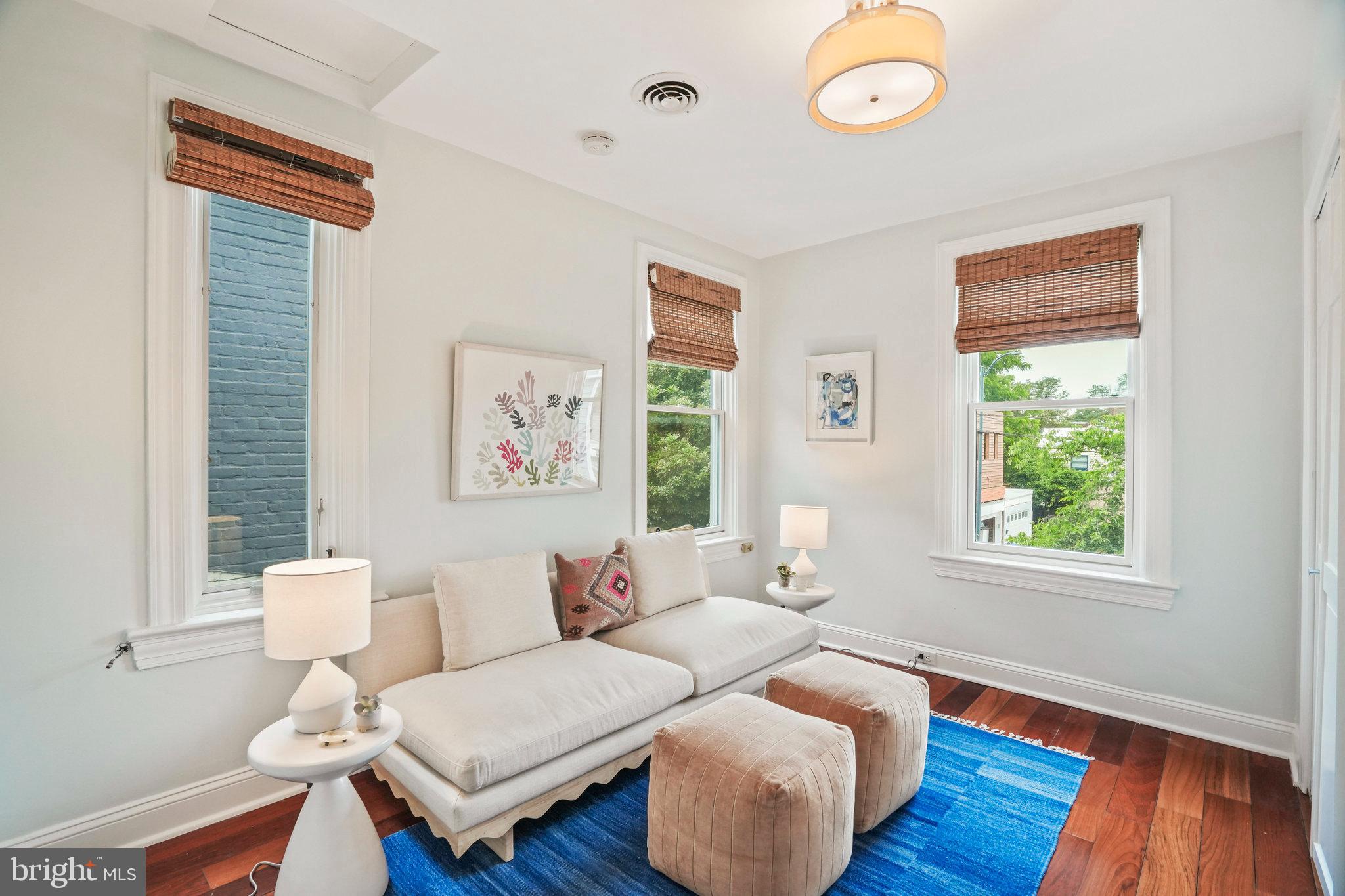 The upper level houses three well-appointed Bedrooms, each with its own closet and window(s), and a beautifully designed marble Full Bathroom with storage vanity/sink and bright window. The exquisite Primary Bedroom features built-in shelving, a large custom closet, and two bright windows. Outdoors, enjoy a charming hardscape patio with space for outdoor furniture and a secure on-site PARKING spot. Steps to the beloved Hill Center cultural venue, Barracks Row and Eastern Market restaurants and shops, the Roost, Yes Organic Market, Trader Joe's and Safeway, Metrorail and Metrobus, Bikeshares and 395/295. Have it all!