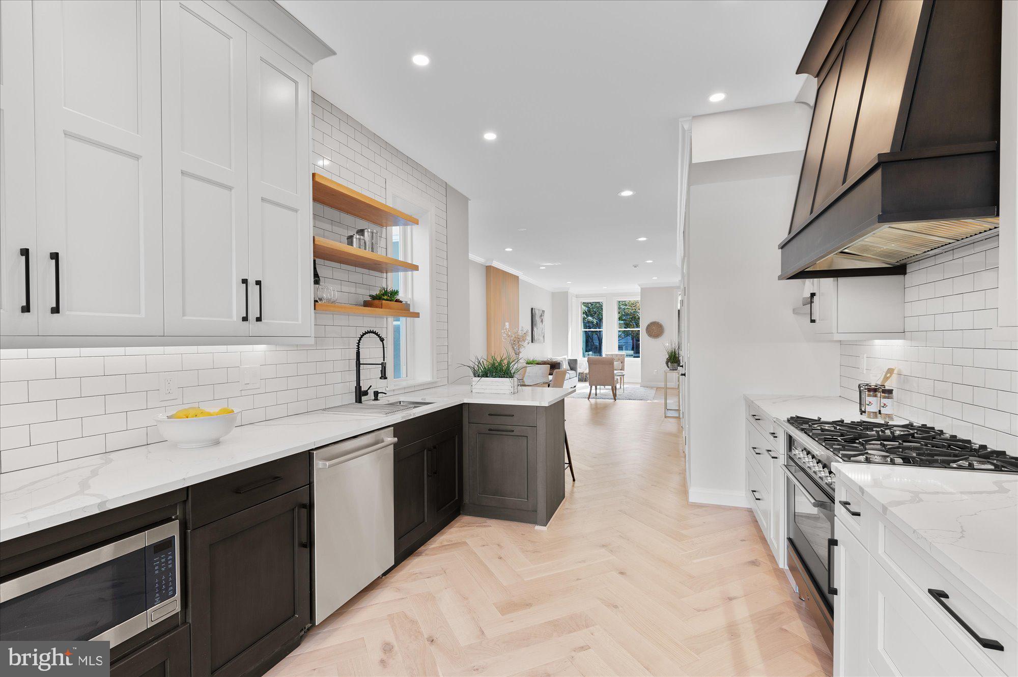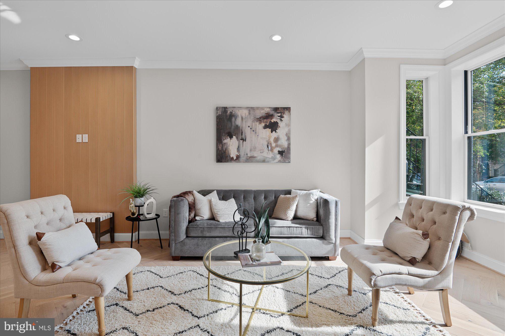 Welcome to 55 R St NW- A masterful renovation in Bloomingdale! This Regal Victorian home has been meticulously renovated to preserve classic details while providing the latest modern finishes. Walking into the main level you will be welcomed and amazed by the high ceilings, crown molding, large bay window that lets in tons of natural sunlight, Pella windows, exposed brick, and herringbone white oak floors throughout! A one-of-a-kind designer's Kitchen includes Luxury Elmwood Kitchen Cabinets, top of the line appliances, oversized range hood, & stylish quartz countertops! The kitchen leads out to the fully fenced back yard with a large deck and lawn, perfect for entertaining & outdoor relaxation. Secure off street parking completes the back yard. The second floor boasts a stunning vaulted owners suite with attached bath and abundant closet/storage space. Two more generous sized bedrooms and a full bath complement this upper level. The fully finished basement has plenty of living space, a wet bar, plus a bonus full bath and a bedroom with egress. This enchanting property is a walker's paradise with a score of 92! Close to Red Hen, Bacio Pizzeria, El Camino, Boundary Stone, and Big Bear Cafe. Enjoy the Bloomingdale weekly Farmer's Market, and not to mention the new McMillan development!!