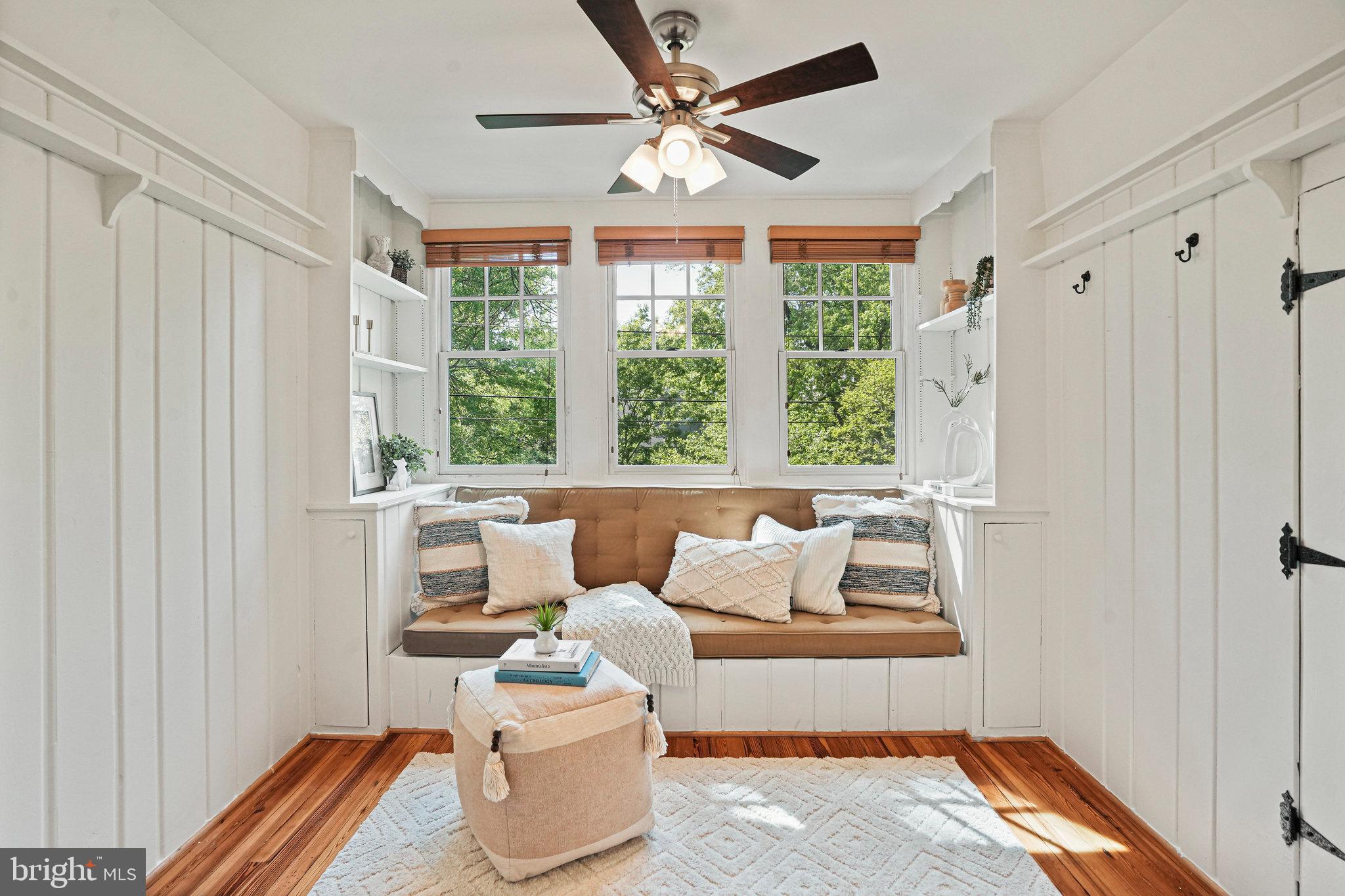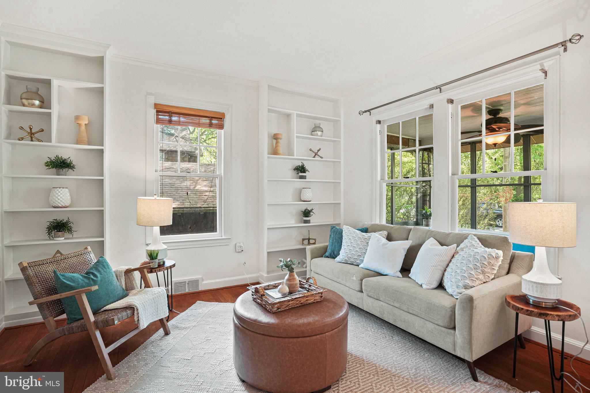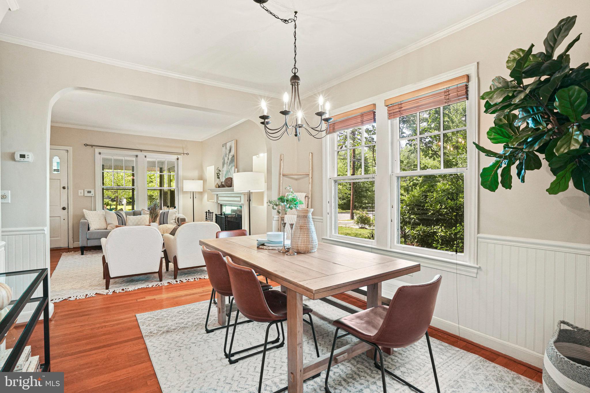 This charming bungalow on one of the most celebrated blocks in Riverdale Park blends beautiful classic details along with all of the modern conveniences you'd expect from an updated home. The house greets you with a lush green yard leading to a spacious screened-in 3-season porch, ideal for outdoor dining, relaxing, or hosting friends on a warm evening. Inside, you're welcomed with a spacious living room anchored by a beautiful wood-burning fireplace . To the right is a versatile room lined with built-ins that can serve as a TV room or office space. A dedicated dining room seamlessly connects to the living area through a beautiful archway, perfect for entertaining.
