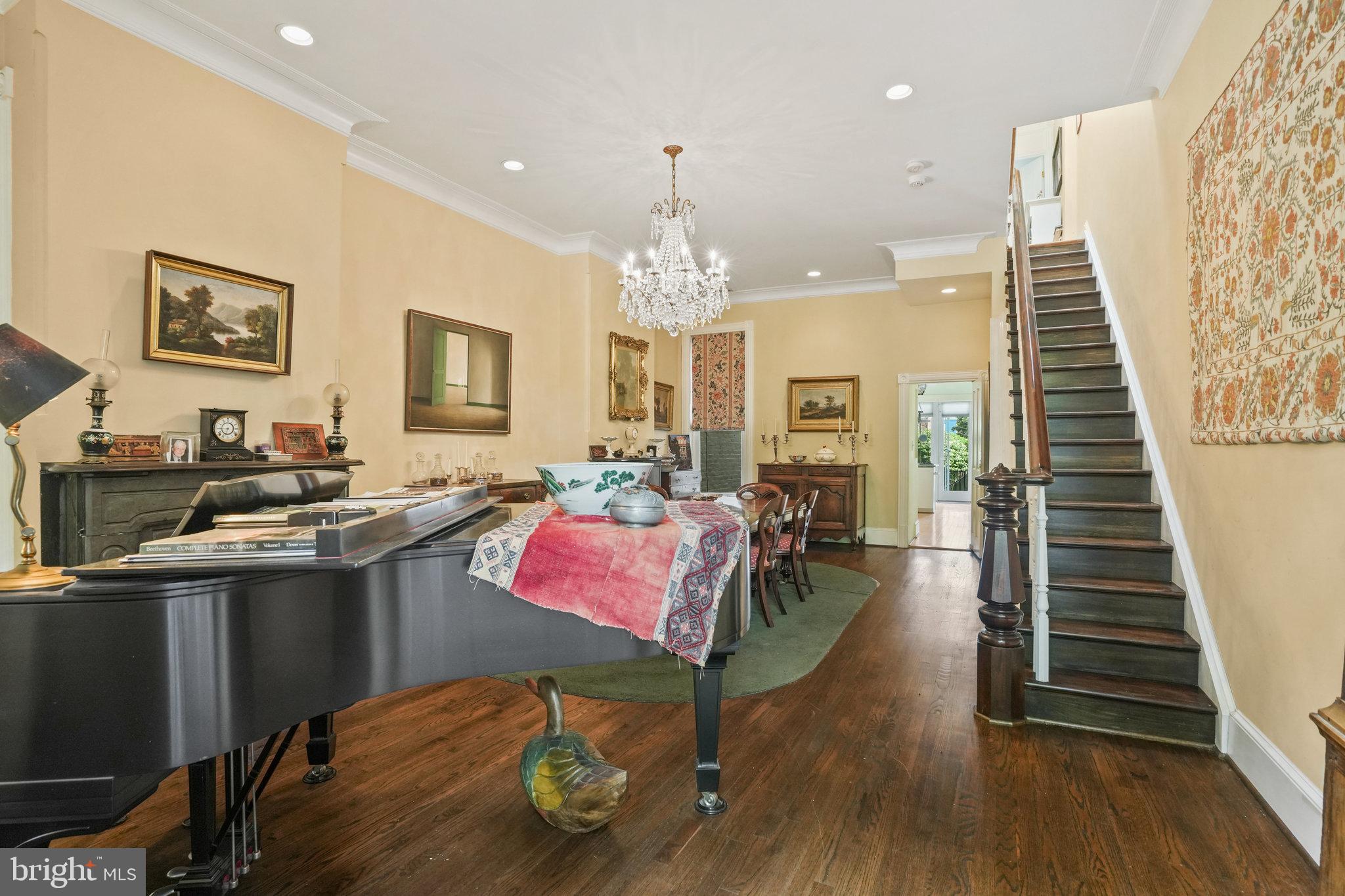 Step into this classic grand Victorian home and be greeted by elegant crown moulding, hardwood floors, and high ceilings adorned with a beautiful chandelier. The double parlor (the original open concept!) boasts two exquisite fireplace mantels. The windowed, eat in kitchen is fully equipped and expertly laid out by a renowned Capitol Hill architect.